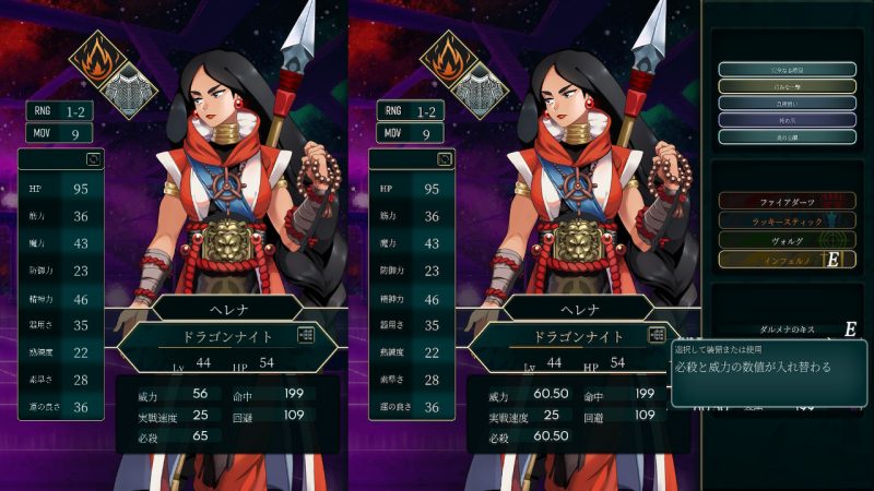 最終盤までわりと柔らかめだったので、「回避を下げて防御を上げる」霊石装備をしてようやく緩い壁に。ドラゴンナイトになった途端に筋力より魔力が高くなるのは草。機動9+魔法間接攻撃で11マス制御できるのはFEプレイヤーとしては驚異の仕様。あとDナイトの魔防高いとかありえない感が強くて嬉しい。